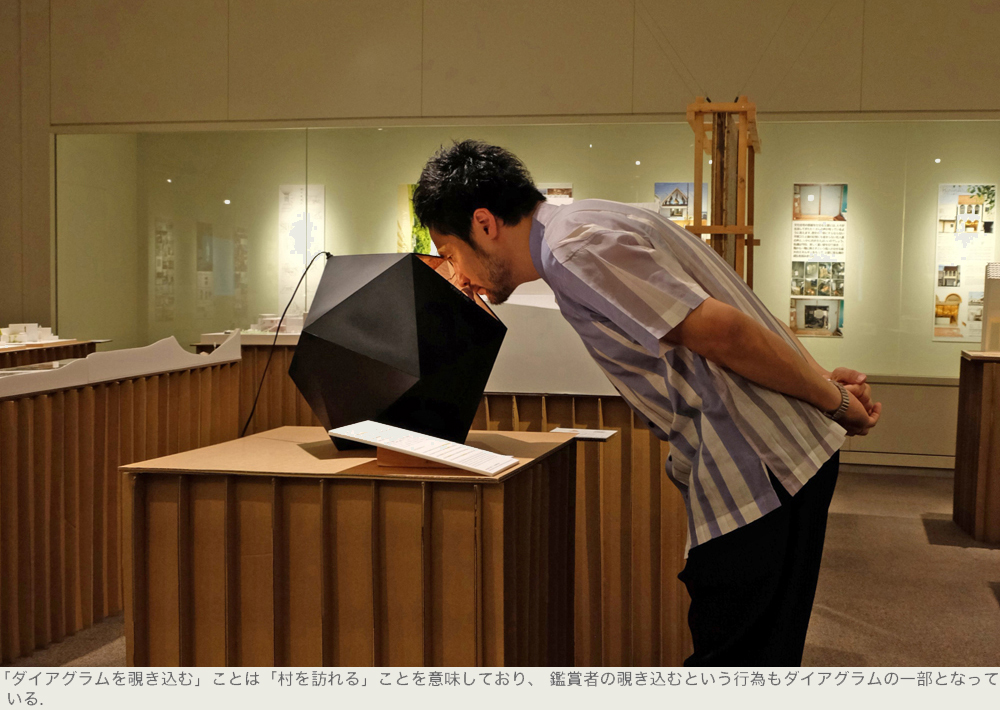 建築家は自らが設計した建築を通してモノを言うべきだと考えるが、このような展覧会では建築の実物を「体感」してもらうことはできない。建築家としては非常に大きく感じる制約の中で、抽象的ではあるが「体感」が可能な立体ダイアグラムによる展示を行った。