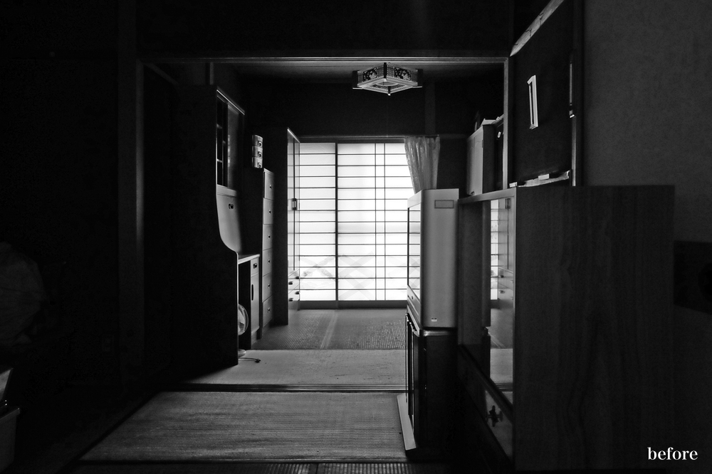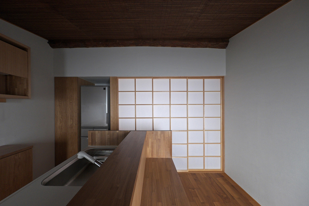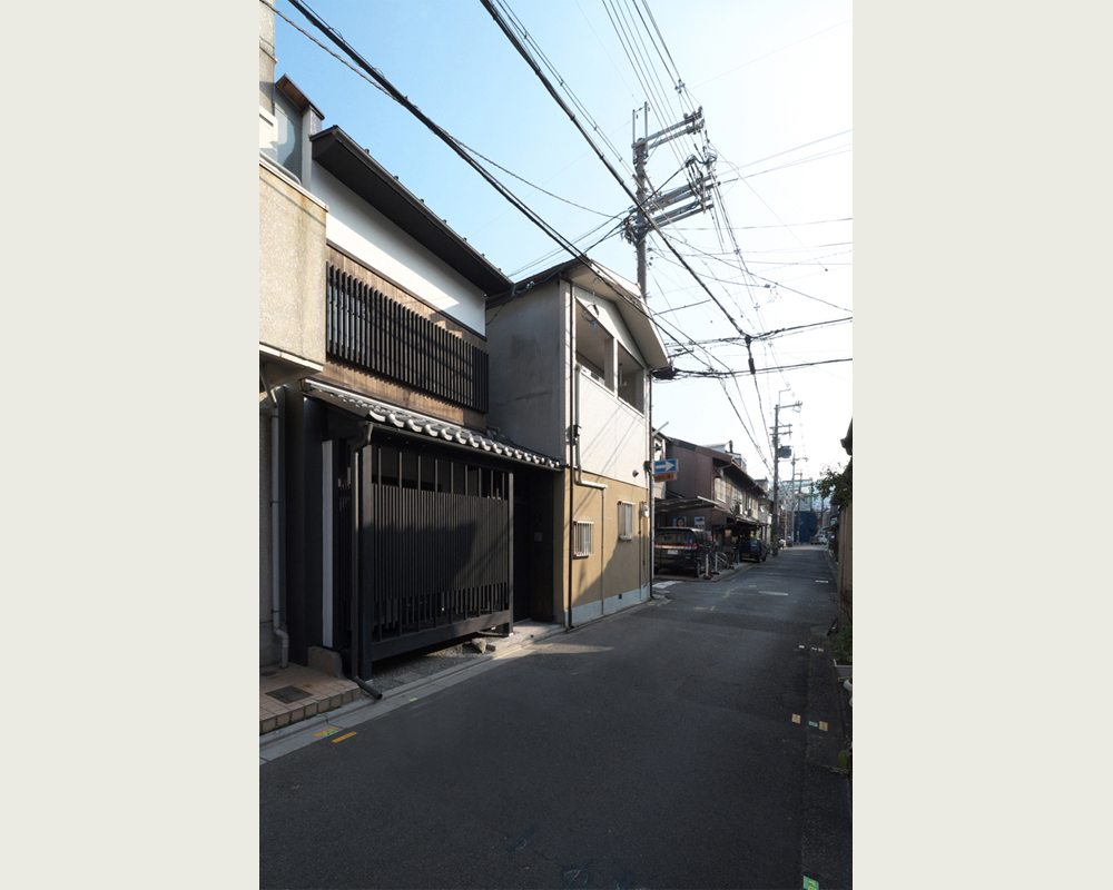 リタイアを迎えようとするご夫婦が、いわゆる「うなぎの寝床」と言われる京都市都市部のご実家を住み直すための改修である。敷地いっぱいまで繰り返された過去の増改築を整理して大幅な減築を行い、お二人の生活に過不足ない広さを求めた結果、延床17坪というコンパクトなものとなった。京町家の知恵を取り入れることで、都市部の密集住宅地でありながら自然の機微を感じられる住宅を目指した。その主な要素は以下の5つである。