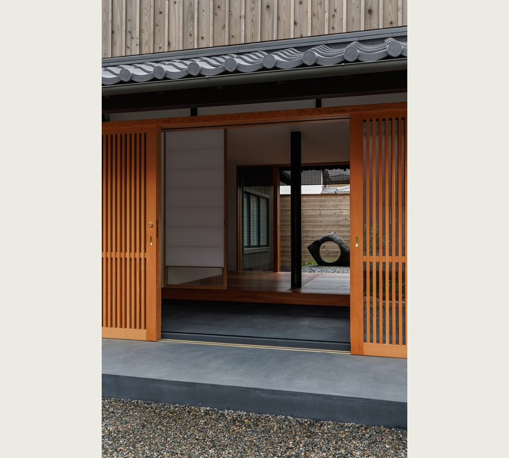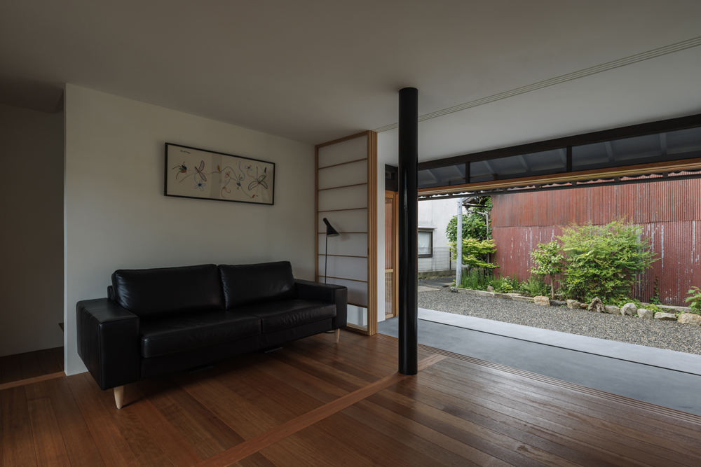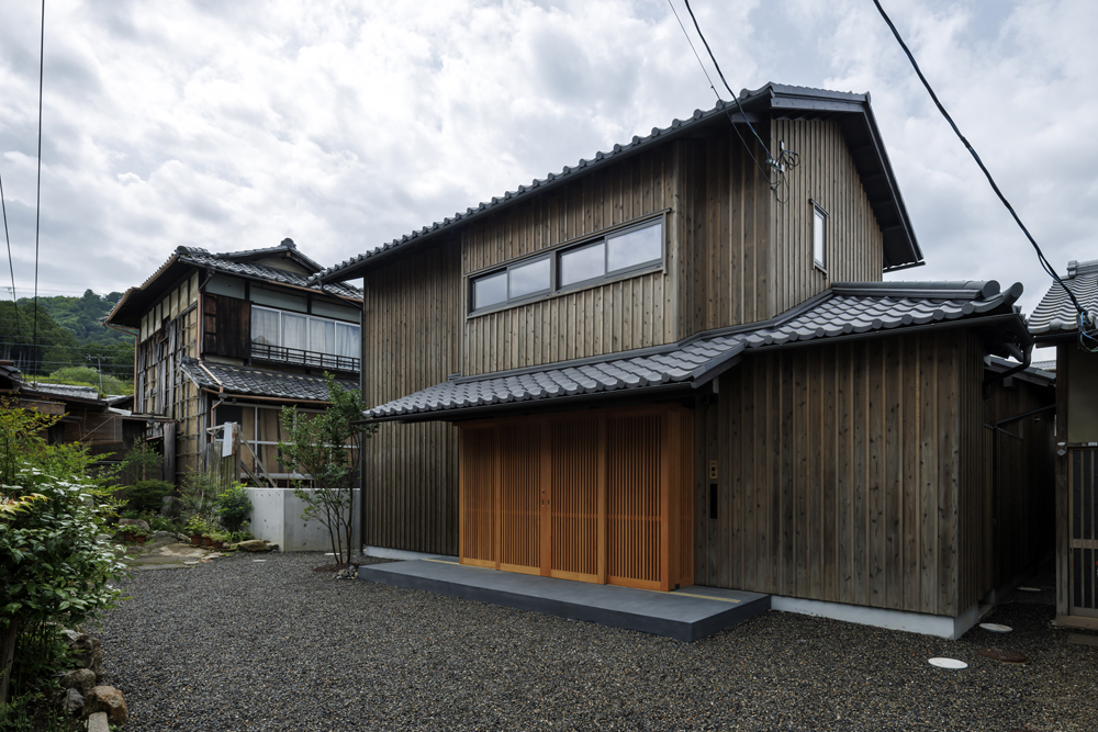 京都市の京都盆地北東外縁に位置する一乗寺エリアに立つ大庭の自宅である。このエリアは平地に街の中心市街地があり、街の外れの山の麓に氏神神社が立ち、その奥に修験道の寺院と比叡山山麓が控えるという日本の集落ではよく見られる階層構造を持っている。敷地は氏神神社近く、山に向かう長い坂道を上った先にある長さ約35メートルの袋路の奥にある。土地は建築基準法上、接道ゼロメートルという状況にあり、所有地の約三分の一を通路としてセットバックし、同法第43条2項2号の特例許可を得て新築を行った。