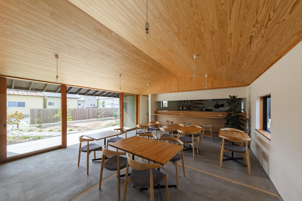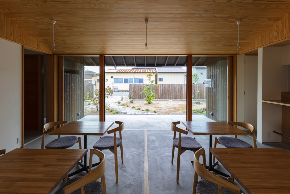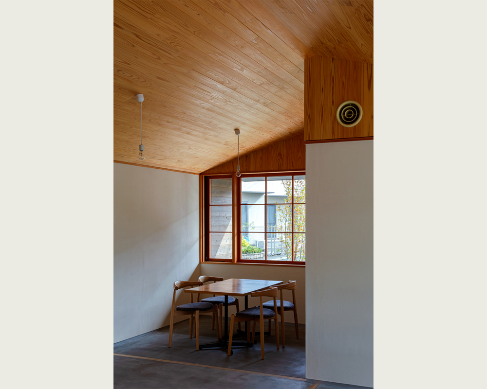 設計の打合せでは震災や復興を直接意識することはなかったが、建主の声の中にはいつも石巻の声があった。完成まで石巻には2年間通うことになったが、打合せの後には毎回市内のいろいろなところを案内して頂いた。建主が顔が広いこともあり、地元のいろいろな方の声を直接聞くこともできた。 お店オープン後、建主と共に走り続けてつくった建物をあらためて眺めてみると、明るく朗らかで、時折見せる芯の強さと多くの心強い友人を持つ、女性建主の人柄がそのまま建物に映り込んだように感じられた。設計中そのような意図を持ったことはなかったが、結果として打合せ以外も含めたプロセスがそうさせたように思う。実際、お店の客層は老若男女さまざまで、地元の本当に幅広い層に受け入れられている。
